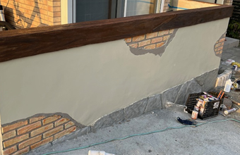 施工開始前には、モルタルアートの下地となる面を丁寧に整えます。ヒビや汚れがある場合は補修・清掃を実施し、モルタルの密着性を高める処理を行います。